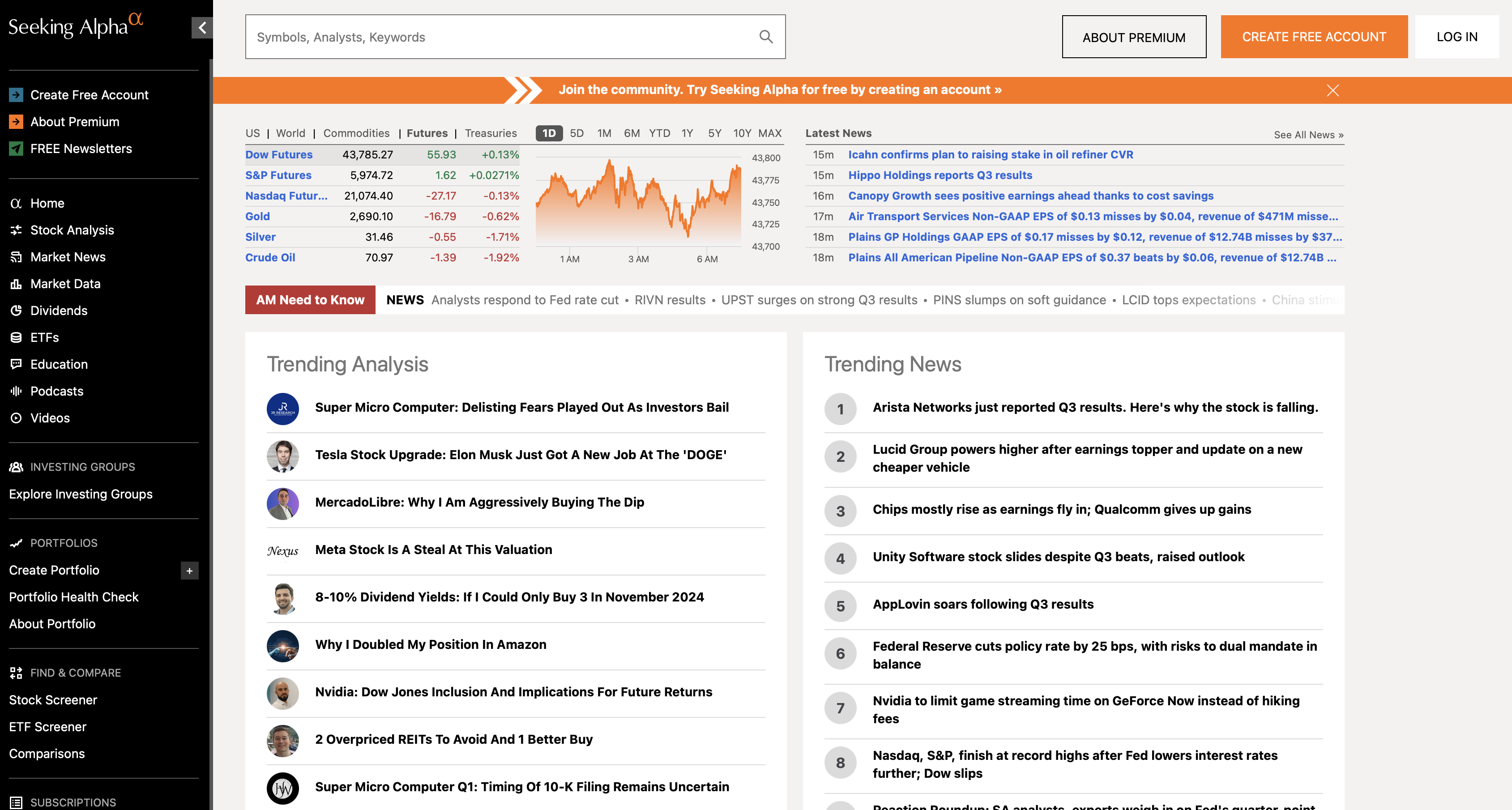 Join Seeking Alpha, the largest investing community in the world. Get stock market news and analysis, investing ideas, earnings calls, charts and portfolio analysis tools.