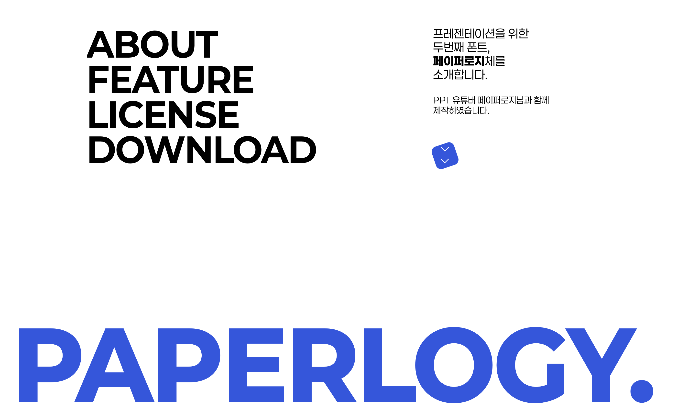 저는 요즘 이 폰트를 가장 많이 이용하는 것 같습니다. 페이퍼로지는 독특한 감성의 고딕 폰트로, 기존의 고딕체와는 조금 다른 개성 있는 스타일을 자랑합니다. 굵은 서체이기 때문에 제목이나 포스터 디자인에서 사용하면 좋을 것 같습니다.