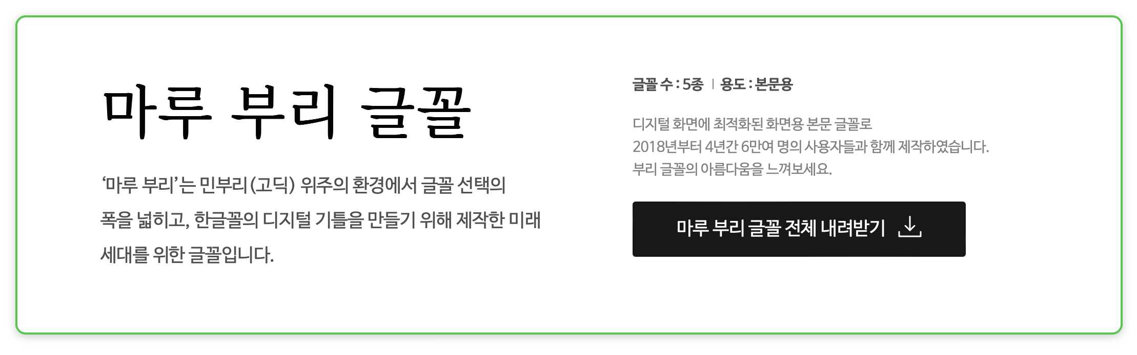 마루부리는 네이버에서 제공하는 명조체 폰트입니다. 한국 전통 서체의 느낌을 현대적인 감각으로 재해석한 디자인입니다. 글자 간의 여백이 넉넉하고, 부드러운 곡선이 많아 따뜻하고 편안한 느낌을 줍니다.