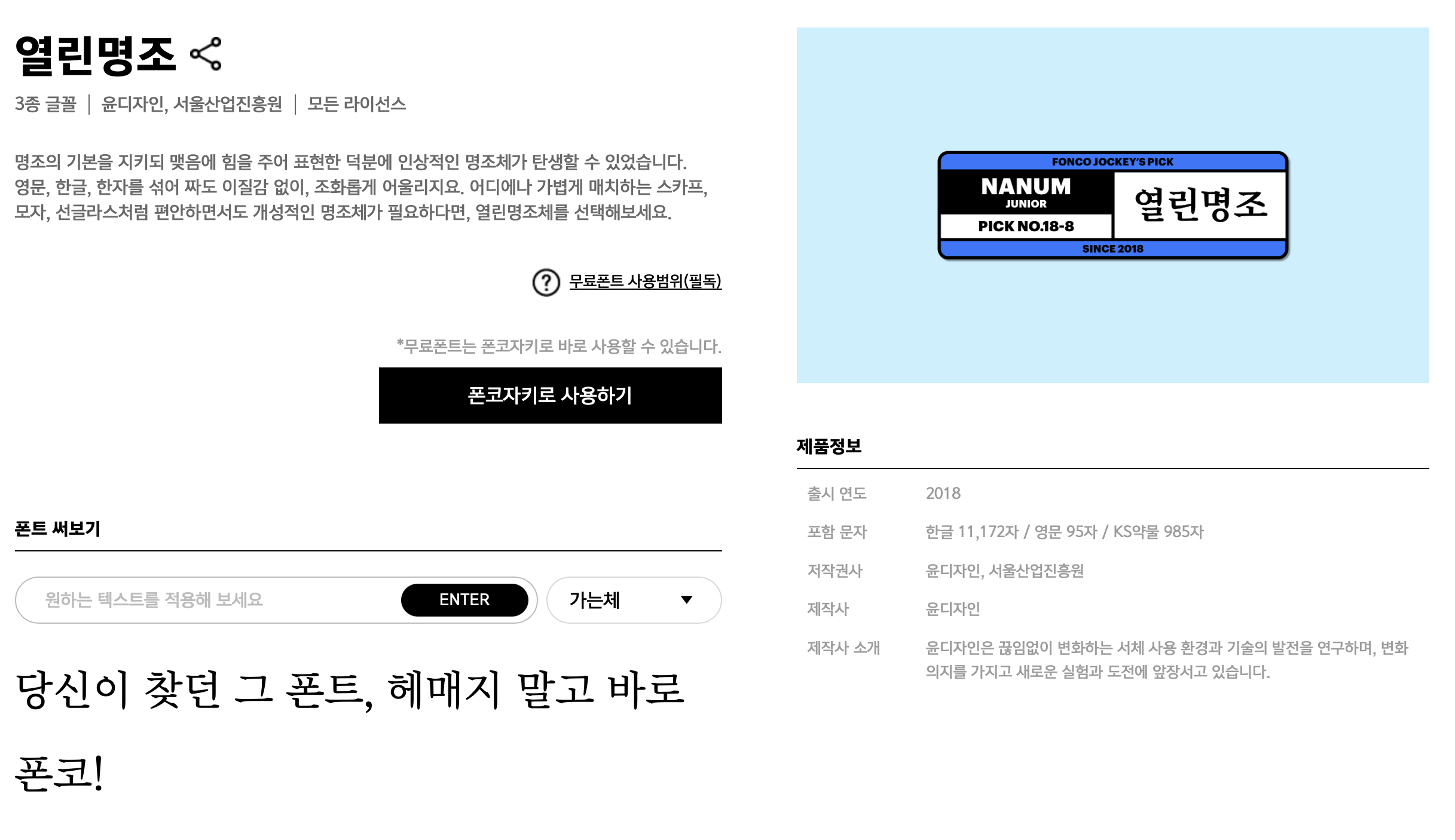 지난번 글에서 상업적 이용 가능한 무료 폰트 중 고딕 종류의 폰트들 중 추천드릴만한 것들에 대해 한번 정리를 했었습니다. 이번에는 그 2번째 시간. 명조편입니다. 사실 우리가 흔히 명조체라고 부르는 이 단어는 명나라 왕조라는 뜻을 가진다고 합니다. 명나라 활자체를 활용하여 개발한 글자꼴이라는 의미로 명조체라고 부르기 시작했다고 합니다. 명조체 고딕체와 달리 전통적인 느낌이나 고급스러운 분위기를 낼 수 있는 폰트입니다. 고딕체와 마찬가지로 상업적 이용이 가능한 무료 명조체를 7개 추천해드리려고 합니다.